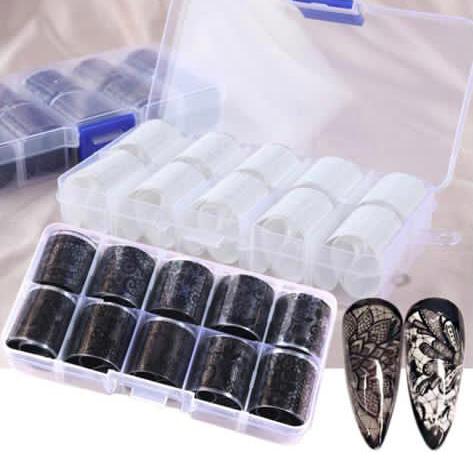 נייר פוייל תחרה בגוניים שחור ולבן לקישוט הציפורן.