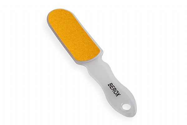 פצירה דו צדדית לכף הרגל עם ידית מפלסטיק ונייר ליטוש מתחלף, של מותג הפדיקור והמניקור של חברת לובלינסקי – BEROX .